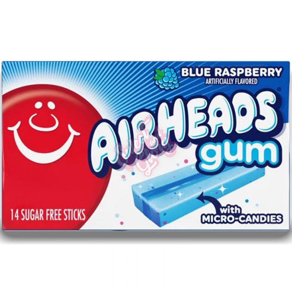 Blue Raspberry Airhead Web unwrap the fun and play delicious with a box full of only your favorite airheads. Twist them, stretch them, or roll them into a ball—any way you prep your airheads, the tangy taffy always satisfies! Each pack has 14 sticks of gum. Unwrap the fun and play delicious with a box full of only your favorite airheads individually wrapped. Blue Raspberry Airhead.